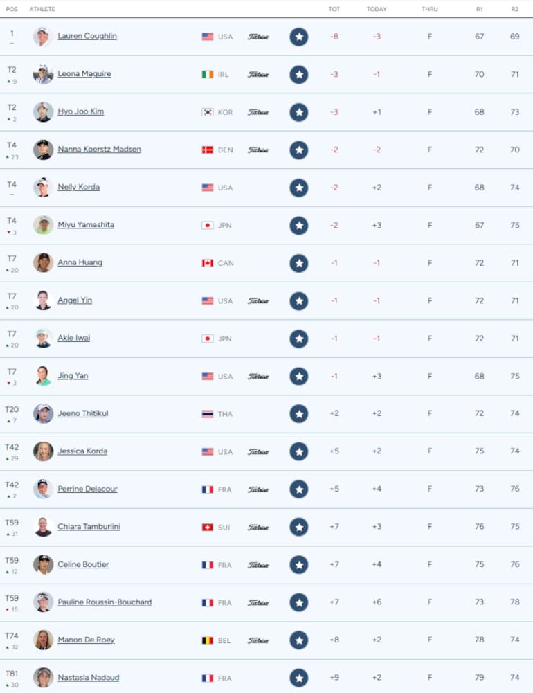 Céline Boutier n’a réussi qu’un seul birdie lors du deuxième tour… à deux trous de la fin. Un birdie qui lui permet de se qualifier avec le score du cut (+7) ! La 28e joueuse mondiale n’a toujours pas réussi à rentrer dans un top 40 en cinq départs de par le monde cette saison. On espère une étincelle de la part de la numéro un française ce week-end, à trois semaines du premier majeur de l’année. Pauline Roussin-Bouchard semblait bien partie pour jouer ce week-end, jusqu’à un terrible triple-bogey au 17 (là où Delacour a également souffert). Son birdie su 18 aura finalement été salvateur. Ouf ! Nastasia Nadaud avait compromis ses chances de qualification après son douloureux 79 de la veille. La jeune Savoyarde échoue finalement à deux coups après une carte de 74.