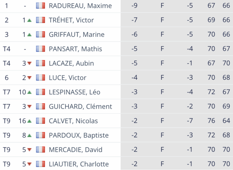 Après son premier tour bouclé en 67 (-4), le natif de Poitiers a confirmé ce samedi avec une belle carte de 66 (-5), empochant les 3 000 € promis au meilleur pro dans un tournoi doté de 15 600 €. Le vainqueur de l’Open de Roissy 2023 s’est imposé avec deux longueurs d’avance sur Victor Tréhet et trois sur Marine Griffaut. Cette dernière était accompagnée d’une autre joueuse du LETAS, Charlotte Liautier.