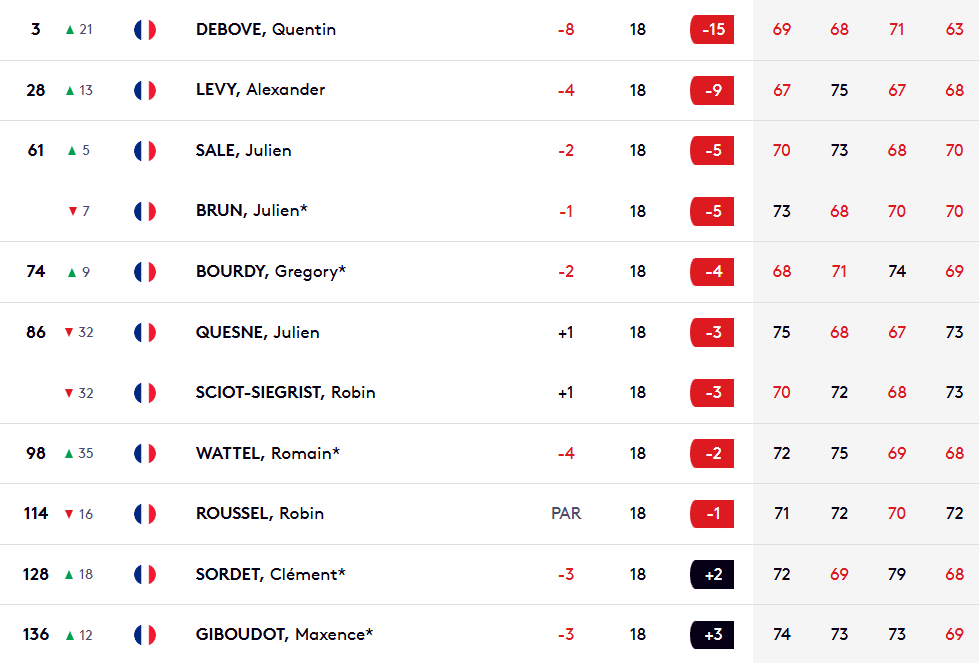 Il mène le contingent bleus depuis trois jours et ne compte pas s’arrêter en si bon chemin. Quentin Debove a même su tirer la quintessence de son jeu de bombardier quand la pression était la plus grande. En ce jour de cut, le joueur issu de la 3e division cette saison (Alps Tour) a joué le score le plus bas de son tournoi pour s’inviter sur le podium à deux tours de la fin.