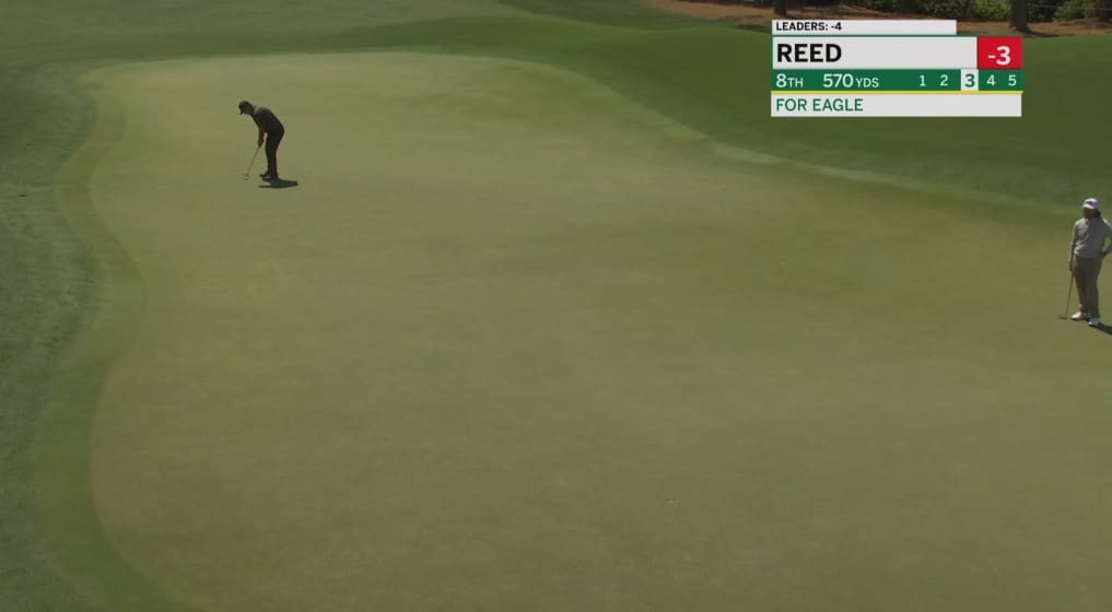 Dans une forme sublime, le vainqueur du Masters 2018, Patrick Reed semble l’un des outsiders les plus dangereux cette année. Sa science du parcours, et son petit jeu aiguisé sont des atouts de maîtres en 2026. Comme ici sur le trou numéro 8.