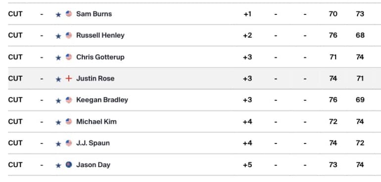 Outre Gotterup double vainqueur cette saison, plusieurs joueurs sont passés à la trappe vendredi. Quatre joueurs de Ryder Cup Justin Rose, J.J. Spaun, Sam Burns et Russell Henley ont en effet plié bagages prématurément. Le vainqueur du dernier FedEx Open de France, Michael Kim fait également partie des éliminés. Tout comme deux anciens vainqueurs du PGA Championship, l’Australien Jason Day et l’Américain Keegan Bradley.