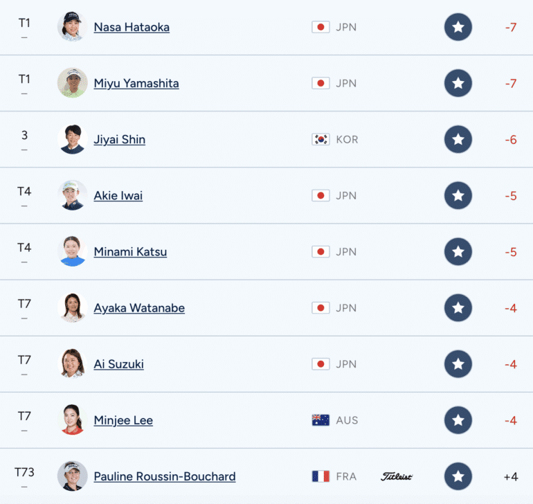 Qui peut empêcher une Japonaise de remporter ce Toto Japan Classic ? A l’issue du premier tour à Shiga, il semble improbable que la victoire puisse échapper à une Nipponne. Elles sont ainsi 9 dans le top 10. Les leaders sont Nasa Hataoka et Miyu Yamashita, toutes les deux ayant signé une carte de -7 (65).