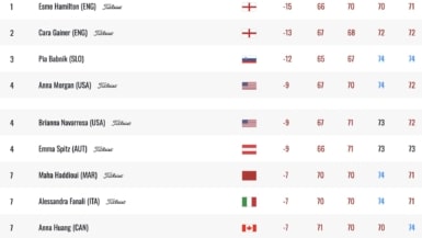 Sa compatriote Cara Gainer prend la deuxième place à -13. La joueuse d’Oxford, victorieuse en février 2025 du Lalla Meryem Cup au Maroc, a conclu sa semaine avec une carte de 72 (-1). La Slovène Pia Babnik, en tête à l’issue du deuxième tour, empoche la troisème place à -12 semaine.