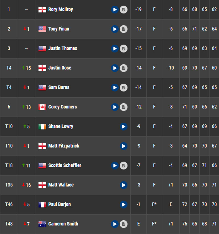 En tête puis chahuté par Justin Thomas (les deux hommes étaient à -17 au départ du 17) après deux bogeys en 4 trous sur le dernier tiers du parcours, McIlroy a su se ressaisir en plantant les drapeaux du 17 et du 18 pour deux birdies « donnés » synonymes de victoire avec deux coups d’avance… sur Tony Finau !