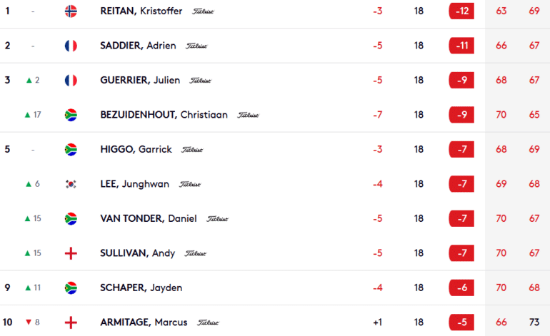 Respectivement deuxième et troisième à -11 (133) et -9 (135), Adrien Saddier (photo) et Julien Guerrier, tous deux 67 (-5) ce vendredi en Afrique du Sud, comptent un et trois coups de retard sur le Norvégien Kristoffer Reitan, toujours seul en tête du Nedbank Golf Challenge. Le week-end s’annonce passionnant pour le Haut-Savoyard, plus que jamais en course pour intégrer le top 50 mondial et ainsi valider son ticket pour le Masters en avril prochain.