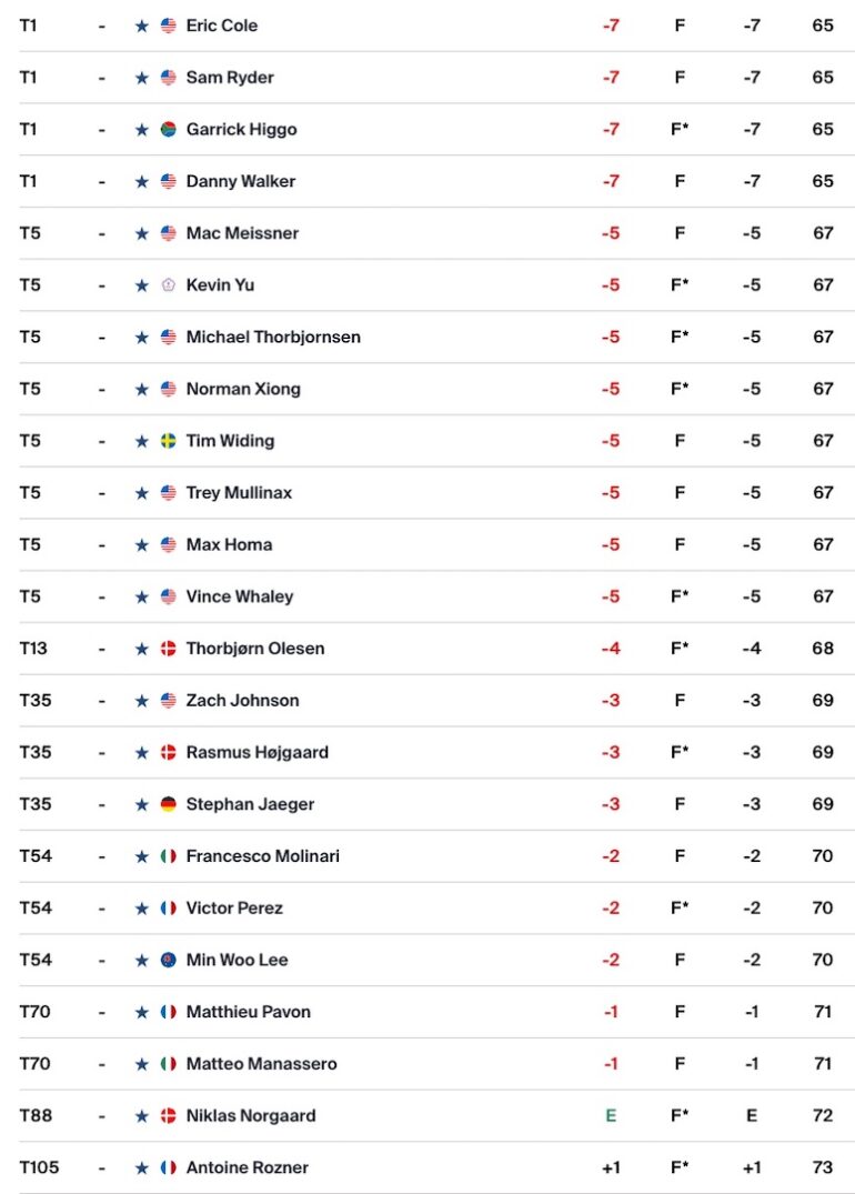 Antoine Rozner, quant à lui, pointe au 105e rang après avoir perdu face au parcours – carte de 73 (+1) ponctuée de cinq bogeys pour quatre birdies.