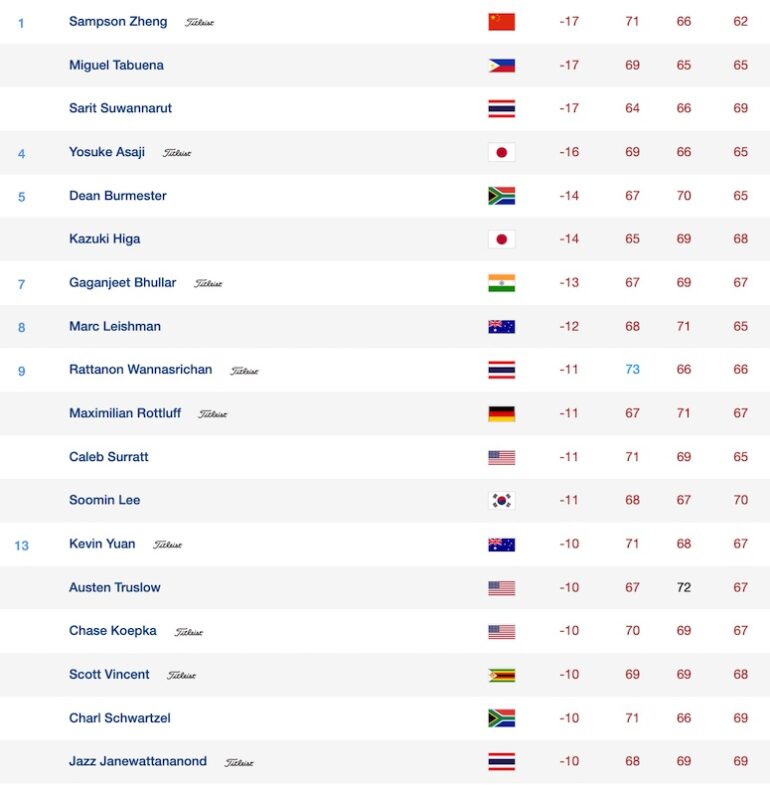 Sampson Zheng a rejoint Sarit Suwannarut en tête de l’International Series Philippines grâce à une incroyable 3e carte de 62 (-10) ponctuée de 8 birdies et un eagle.