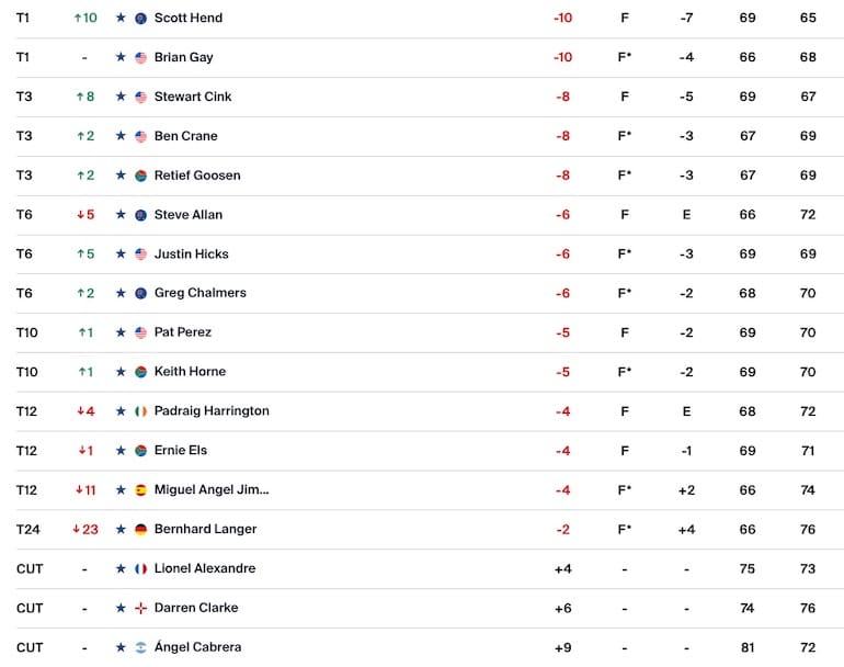 Scott Hend a rejoint Brian Gay en tête du Senior PGA Championship après avoir rendu une carte de 65 (-7) sur le parcours du Concession Golf Club à Bradenton, en Floride.