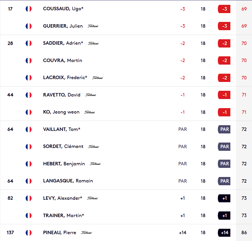 Pour l’instant seuls Alexander Lévy, Martin Trainer (+1) et Pierre Pineau (+14) sont en dehors de la marque du cut provisoire.