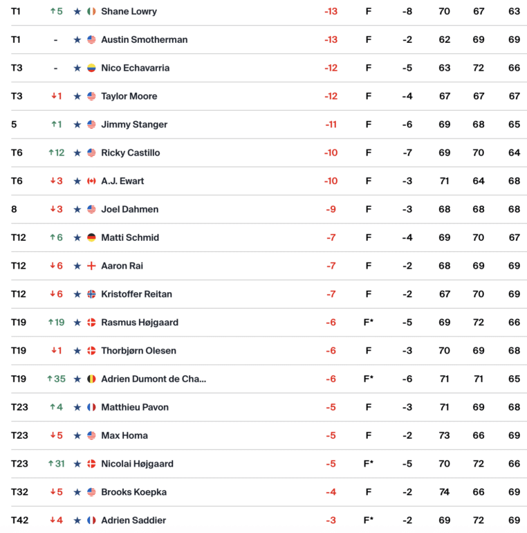 Outre Shane Lowry, de nombreux Européens sont aux avant-postes, à l’image des frères Nicolaï et Rasmus Højgaard, de leur compatriote danois Thorbjørn Olesen, mais aussi l’Allemand Matti Schmid, l’Anglais Aaron Rai et… les Français.