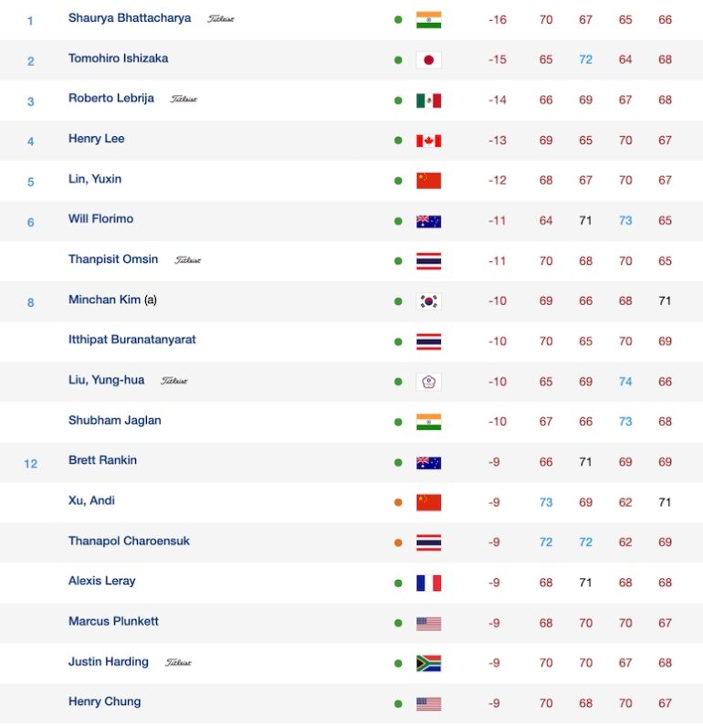 L’Indien Shubham Jaglan a pris la tête du Final Stage des Cartes asiatiques grâce à une carte de 66 (-5). Il a signé six birdies (et une seul bogey) sur le parcours du Lake View Resort and Golf Club à Hua Hin, en Thaïlande, pour devancer d’un coup le Japonais Tomohiro Ishizaka (68/-3).