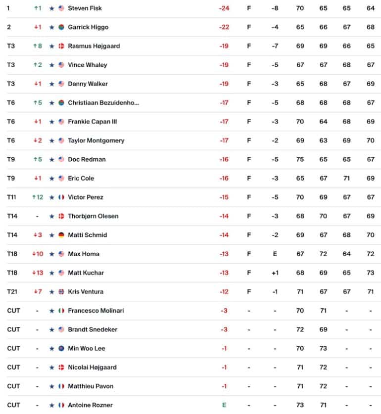 Steven Fisk a décroché sa première victoire et s’est ainsi assuré de pouvoir poursuivre l’aventure sur le PGA Tour, tandis que Rasmus Højgaard a tiré des leçons de la Ryder Cup pour marquer des points et que Victor Perez s’est rapproché du top 100 de la FedEx Cup.