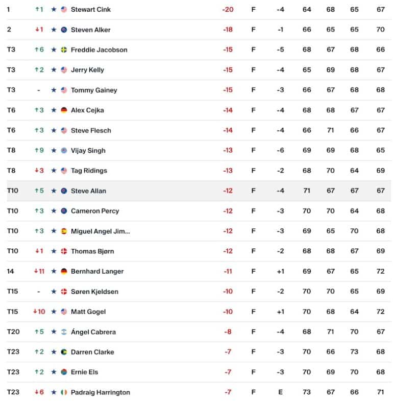 Déjà vainqueur à huit reprises lors de sa carrière sur le PGA Tour – marquée notamment par sa victoire en playoff face à Tom Watson au British Open 2009 -, Stewart Cink confirme ainsi sa place parmi les légendes du circuit senior.