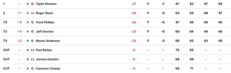 Co-leader après 36 trous, Taylor Dickson est allé chercher un troisième titre en carrière sur le Korn Ferry Tour après les deux obtenus en 2024.