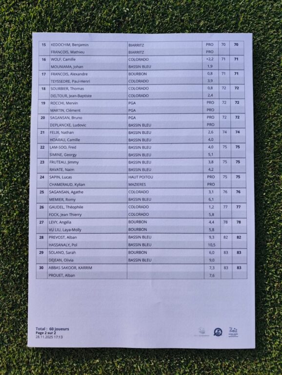 Cette session de foursomes devrait comme chaque année rebattre les cartes après 36 trous. Et ceci pourrait permettre à de nombreux binômes de faire, qui sait, la différence. On pense ici aux « favoris » Romain Wattel-Andoni Etchenique, Julien Sale-Romain Lanteri et Maxime Radureau-Anthony Grenier, troisièmes ex aequo à -6 (avec Hermes Ferchaud et Clément Poletti) !