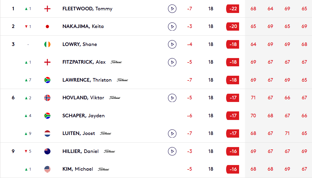 Le Japonais Keita Nakajima seule vraie menace, joue lui sa chance jusqu’au bout, glissant même un birdie sur le 17 pour revenir provisoirement à un coup de Fleetwood. Mais le joueur de 34 ans assommait définitivement le tournoi avec son 8e birdie du jour sur le green du 17 également.