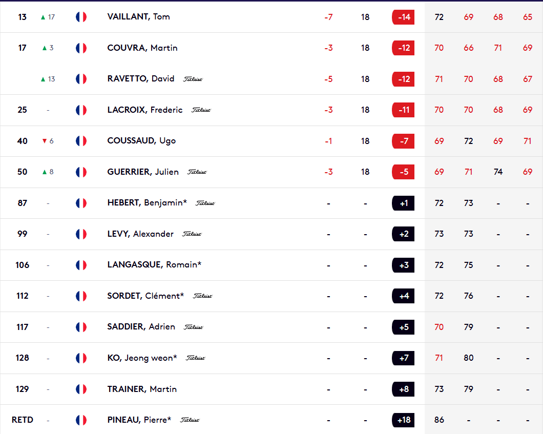 Au rayon bonnes nouvelles, le résultat convainquant de Martin Couvra, 23 ans, qui retrouve des couleurs après une période un peu moins faste. Le joueur de Cannes-Mougins prend une belle 17e place et remonte en 13e position de la Race to Dubaï, ravivant encore plus ses espoirs de PGA Tour l’an prochain.