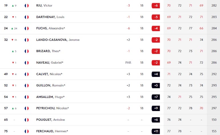 Le dernier qualifié est le pensionnaire du Pro Golf Tour Antoine Bachelier. 31e jeudi soir, le joueur du Golf de la Boulie a signé sa meilleure carte de la semaine : 67. Il gagne 15 places et se hisse in extremis dans le bon wagon.