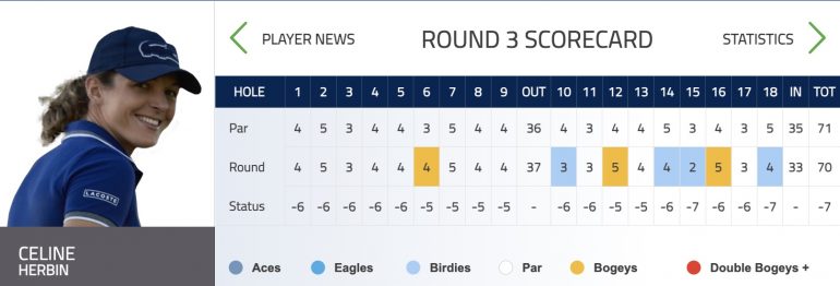 Elles ont toutes franchi l’écueil du cut et la mieux classée au terme des 54 trous est Céline Herbin avec un total de -7 qui lui permet de s’adjuger la 42e place.