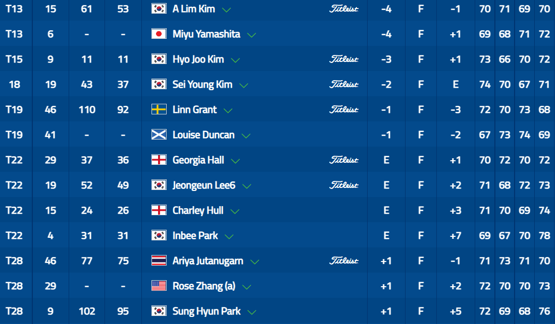 29e après 54 trous, la Francilienne installée à Dallas (Texas) termine à la septième place à -5 (279), ex-aequo avec la Néo-Zélandaise Lydia Ko, la Japonaise Nasa Hataoka, la Thaïlandaise Atthaya Thitikul, la Canadienne Brooke Henderson, victorieuse à Evian il y a quinze jours, et l’Australienne Stephanie Kyriacou. Que du beau linge !