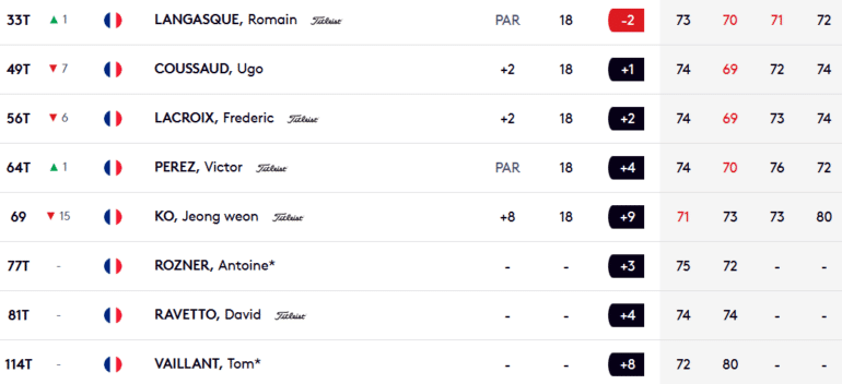 On a un instant pourtant cru que la tendance allait s’inverser lorsque David Puig, le partenaire de jeu du Texan, a aligné trois birdies consécutifs du 8 au 10, réduisant l’écart à deux coups mais le jeu de fers du jeune espagnol de 24 ans a subitement commencé à se dérégler sur le trous suivants, encaissant trois bogeys du 11 au 15.