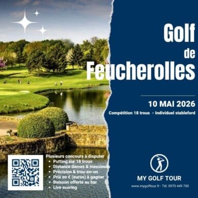 Les points clés de la compétition : – Formule de jeu : Individuel stableford – Eligible championnat IDF MY GOLF TOUR 2026 – Les 3 meilleurs scores de chaque série gagnent un prix. – Les gagnants des 5 concours reçoivent un prix. – Les gagnants choisissent leur prix ! – Tous les gagnants reçoivent leur prix en euros (€). – Prenez la route peu après votre compétition pour éviter le trafic. – Une boisson offerte à tous les participants. – Calcul des scores en temps réel (live scoring) – Compétition ouverte à tous Comment ça marche ? Peu après votre inscription, vous recevrez un email pour vous connecter à votre espace personnel sur www.mygolftour.fr (uniquement pour les nouveaux clients). Les prix sont remis en euros (€) sur votre espace personnel le lendemain de la compétition, après l’envoi d’un email pour annoncer la liste des gagnants. Vous pouvez cumuler ou utiliser vos gains jusqu’au 31 décembre de la saison 2026 pour choisir les produits ou les services de nos partenaires sur www.mygolfshop.fr Toutes les compétitions MY GOLF TOUR : https://bit.ly/4qR37Kj