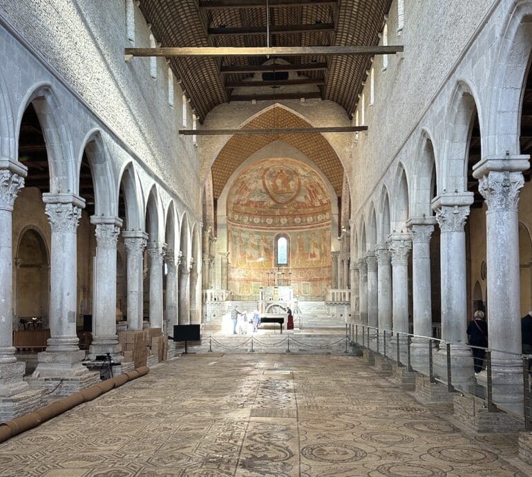Sur le plan culturel, un arrêt à Aquileia, entre les deux golfs, s’impose. Classée au patrimoine mondial de l’UNESCO, elle dévoile d’impressionnantes fouilles romaines et une basilique du XIe siècle aux mosaïques exceptionnelles. Trieste mérite également la visite : ville colorée aux influences autrichiennes, elle vibre chaque année au rythme de la mythique Barcolana, l’une des plus grandes régates au monde, réunissant près de 2 000 bateaux.