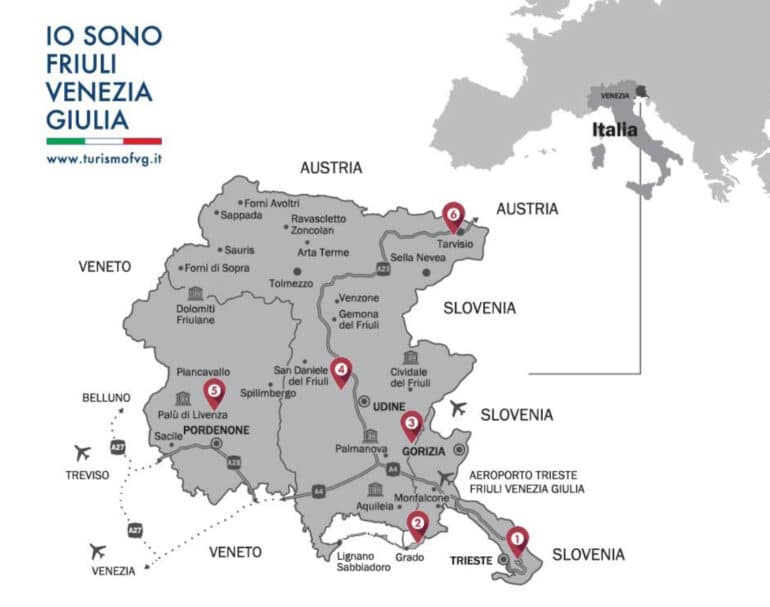 Le Friuli-Venezia Giulia ne se résume pas à ses fairways. Les montagnes séduisent les amateurs de ski de randonnée et de vélo. Comme souvent en Italie, la gastronomie est un marqueur identitaire fort : impossible de passer à côté du prosciutto di San Daniele, au goût plus intense que celui de Parme. Les vignerons, réputés pour leurs blancs pétillants ou non complètent cette identité gourmande.