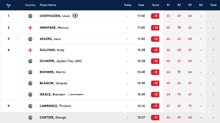 À Johannesburg, l’Open d’Afrique du Sud qui marque la rentrée 2020 de l’European Tour est dominé, après trois tours, par la vedette nationale Louis Oosthuizen qui a rendu une belle carte de 64 pour se retrouver en tête à -15 (65, 69, 64).