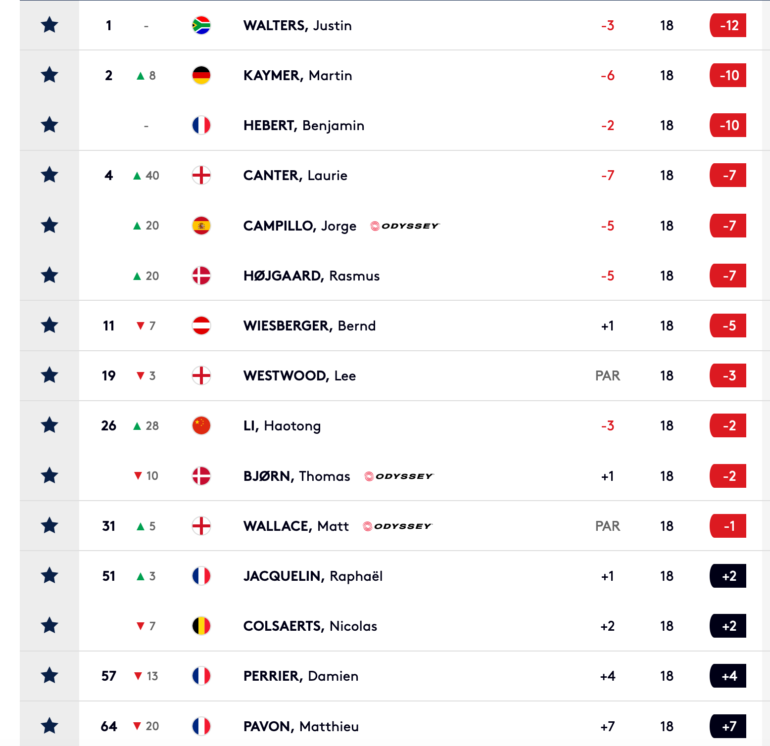 Le Sud-Africain Justin Walters est toujours en tête au Belfry après trois tours (-12). Il est chassé par l’Allemand Martin Kaymer (-10) et par Benjamin Hébert (-10 également), qui a bien fini et reste en lice pour la victoire.