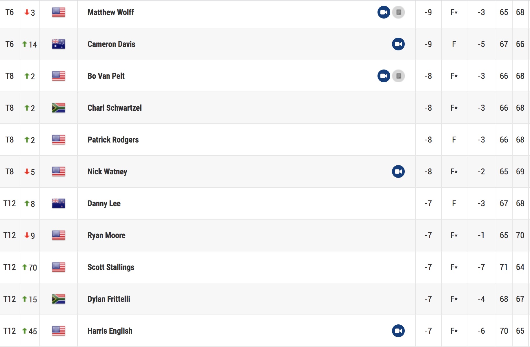 En tête Richy Werenski et Michael Thompson devancent toujours Tony Finau, qui a confié son sac à son entraineur cette semaine après s’être séparé de son cadet. Un choix qui semble payant.