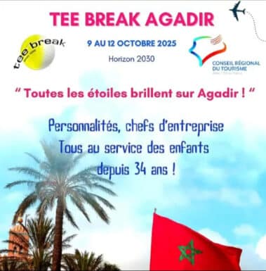 Pour participer au Tee Break Agadir 2025, il suffit de faire un don de 350 euros par journée ou de 1500 euros pour le forfait complet (hors hébergement) reversé aux associations partenaires, auprès de Mme Véronique Chaplain (+33 6 81 61 02 76 – Teebreak@orange.fr) qui se fera un plaisir de vous transmettre le programme des festivités sur demande. Le dîner de gala du 11 octobre est accessible sur réservation au tarif de 100 euros. Toutes les participations donnent droit à une attestation fiscale.