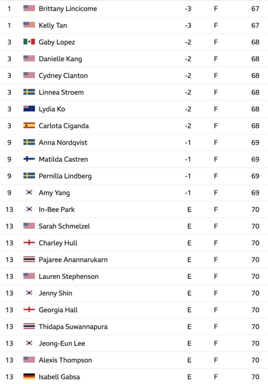 Tan, 26 ans, qui n’a jamais terminé mieux que 30e en majeur, a joué le retour sans commettre la moindre erreur. Toujours à la recherche d’une première victoire sur le LPGA la joueuse de Malaisie n’a pas franchi le cut au Women’s Open et son meilleur résultat en grand chelem date de 2016 lorsqu’elle a pris la 30e place de PGA Championship.