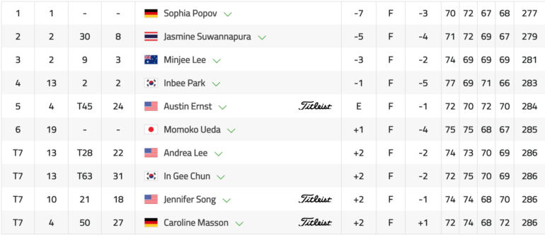Première Allemande à gagner un Majeur, Sophia Popov, prise par l’émotion, a eu du mal à réaliser qu’elle venait de gagner le Women’s Open sur le parcours du Royal Troon. Et de quelle façon : avec un total de -7 (70, 72, 67, 68), deux coups d’avance sur la Thaïlandaise Jasmine Suwannapura et quatre sur l’Australienne Minjee Lee. Avec panache mais sans public, Covid oblige !