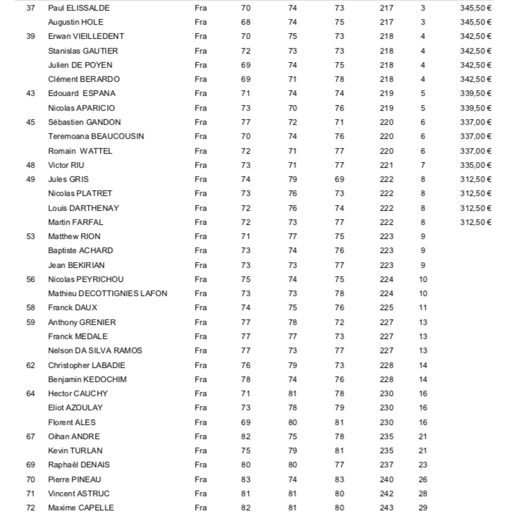 Derrière eux, notons la belle troisième place de Julien Brun qui confirme son début de saison et le retour souriant d’Alex Levy qui s’est dit satisfait de son tournoi et d’un golf retrouvé. Il a joué avec Romain Langasque ce dernier tour et l’ambiance était au rendez-vous.
