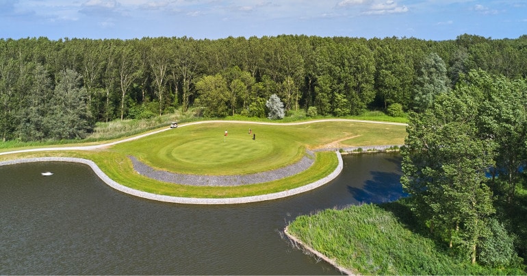 Un parcours de Dunkerque varié et réputé également pour le green de son trou numéro 4 qui rappelle le style de l’architecte militaire rendue célèbre par ses fortifications sous le règne de Louis XIV, Vauban. « Nous avons 27 trous à Dunkerque. Le parcours 18 trous intègre des éléments d’architecture de Vauban, dont notre iconique green du trou numéro 4 en forme d’as de pique. Le parcours est très varié avec une partie en hauteur plus exposée au vent, une partie avec pas mal d’obstacles d’eau et une partie avec de nombreux arbres. »